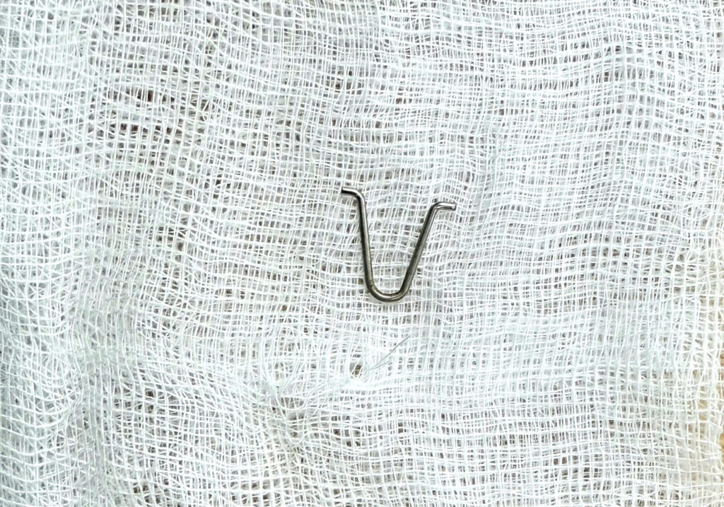 Nhờ sự phối hợp chặt chẽ và kinh nghiệm của BSCKII. Đỗ Quang Vinh Trưởng khoa Nội Tiêu Hóa cùng ê-kíp, dị vật là 01 kim loại có hình chữ V, 2 đầu nhọn, kích thước 1 x 1,2 cm đã được lấy ra an toàn.